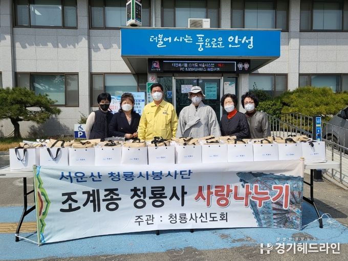 [경기헤드라인=인치덕 기자] 안성시 서운면은 지난 5일 청룡사로부터 ‘사랑나누기’ 행사 진행 후 모인 기금과 생필품 세트를 전달받았다고 밝혔다.