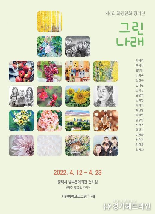 [경기헤드라인=인치덕 기자] 2022년 평택시 문화예술 공모사업 선정 '제6회‘화양연화’정기전시회'가 오는 12일부터 23일까지 평택 남부문예회관 전시실에서 진행된다.