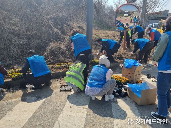 [경기헤드라인=인치덕 기자] 바르게살기운동 평택시청북읍위원회는 식목일을 맞아 지난 4일 청북읍행정복지센터~청북초등학교, 고잔저수지 일대의 환경정비를 실시하고, 청북초등학교 입구에 봄꽃을 식재했다.