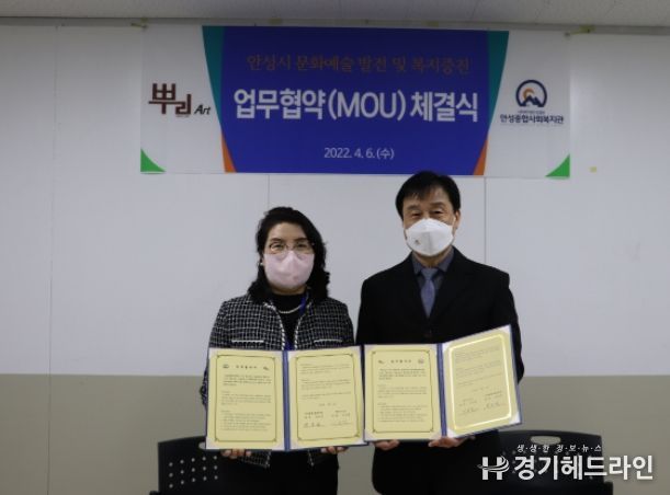[경기헤드라인=인치덕 기자] 안성종합사회복지관(관장 장은순)과 뿌리아트(대표 이상헌)는 지난 4월 6일 협력관계를 형성해 주민의 복지를 증진하고자 업무협약을 체결했다.