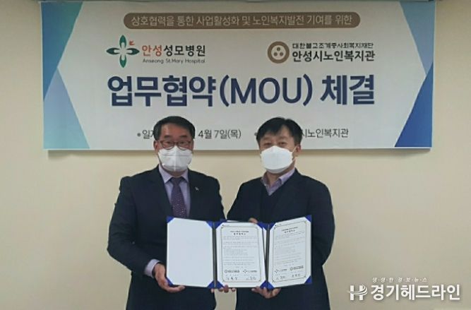 [경기헤드라인=인치덕 기자] 대한불교조계종사회복지재단 안성시노인복지관(관장 김동선)이 안성성모병원(병원장 이주한)과 지역사회 내 치매예방교육 및 노인건강증진사업을 위한 업무협약을 맺었다고 지난 7일 밝혔다.