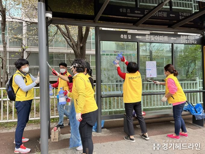 이번 환경정비 활동은 동 직원 및 단체 회원 10명이 참여해 시민들이 많이 이용하는 버스승강장과 주변 환경정화 활동뿐만 아니라, 코로나19 확산 예방을 위한 방역활동도 병행했다.