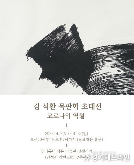 [경기헤드라인=인치덕 기자] 안성시는 지난 4월 2일부터 안성천 ‘결 갤러리’에서 다섯 번째 기획전시로 중견작가 김석환의 목판화 전시를 개최했다.