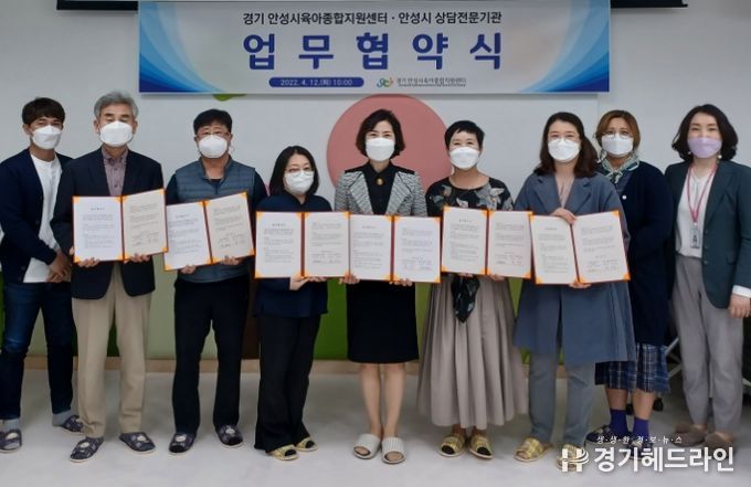 [경기헤드라인=인치덕 기자] 안성시육아종합지원센터는 지난 12일, 영유아 발달 관련 지속적인 관리가 필요한 영유아의 상담 및 치료 연계를 위해 전문심리상담센터 7개 기관과 업무협약을 체결했다