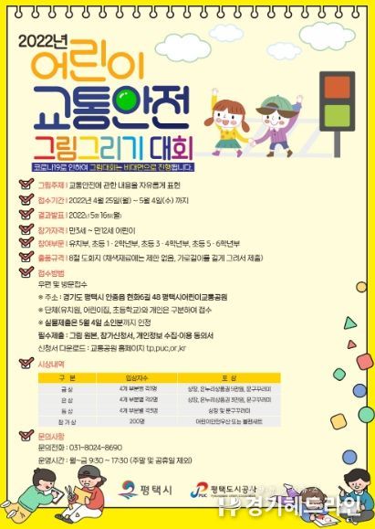[경기헤드라인=인치덕 기자] 평택도시공사(사장 김재수)가 수탁 운영중인 평택시 어린이교통공원이 제100회 어린이날을 맞아 제1회 교통안전 그림그리기 대회를 비대면으로 개최한다고 밝혔다.