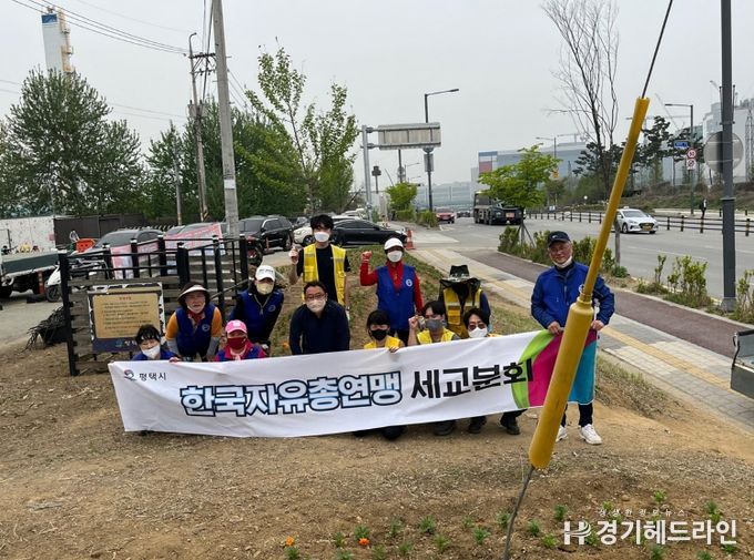 이날 활동은 한국 자유총연맹 세교분회 회원 6명과 경기행복마을관리소 지킴이 4명과 함께 무단투기가 빈번했던 도로변 공한지에 메리골드 2000본을 식재해 쓰레기와 잡풀로 뒤덮여 눈살을 찌푸리게 만들던 거리 환경을 화사하게 변모시켰다.