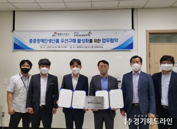 [경기헤드라인=인치덕 기자] 평택도시공사는 26일, 경기도장애인생산품판매시설과 중증장애인생산품 우선구매 활성화를 위한 업무협약을 체결했다고 밝혔다.