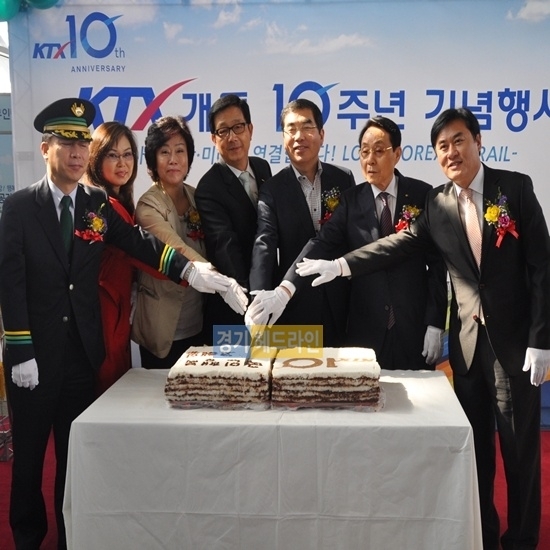 KTX광명역에서는 수도권서부본부장, 광명시장외 약 100여 명이 참석한 가운데 “KTX개통 10주년 기념식”을 시행하고, 풍물놀이, KTX포토존, 다과제공 등 다양한 이벤트로 광명역을 이용하는 고객들에게 감사의 마음을 나눴다.
