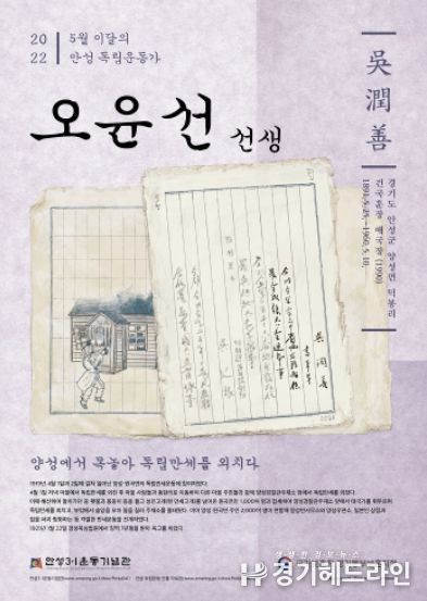 [경기헤드라인=인치덕 기자] 안성시와 경기동부보훈지청이 공동으로 2022년 5월 이달의 안성 독립운동가로 오윤선(吳潤善, 1891~1960) 선생을 선정했다.