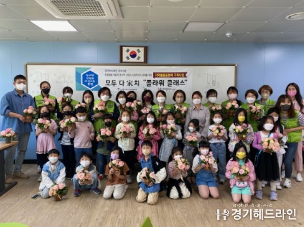 [경기헤드라인=인치덕 기자] 평택시 고덕동 지역사회보장협의체는 가정의 달을 맞아 지난 3일 2022년 평택복지재단 사회복지 프로그램 공모사업인 ‘모두 다 家치’ 프로그램으로 다함께돌봄센터 4호점 아동들과 연계해 플라워클래스를 진행했다.