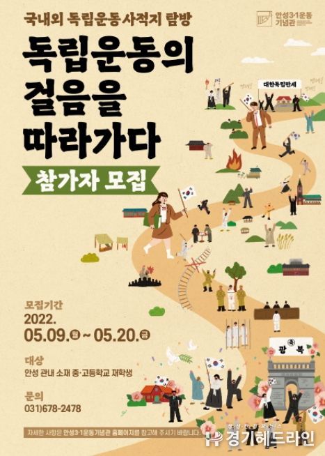 신청기간은 오는 5월 20일까지이며, 참가자 신청 관련 자세한 사항은 안성시청 및 안성3·1운동기념관 홈페이지에서 확인할 수 있다.