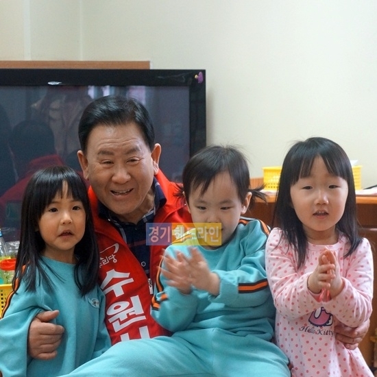 김용서 새누리당 수원시장 예비후보는 3일 오전 권선구 세림유치원을 방문해 교사들을 격려했다.