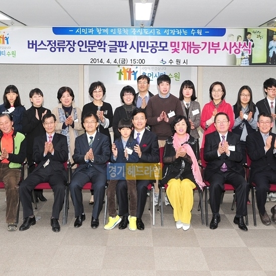 수원시(시장 염태영)가 지난 4일 버스정류장 인문학 글판 창작시 공모 입상자와 재능기부자에 대한 시상을 했다.
