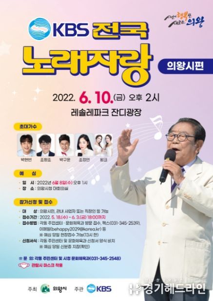 [경기헤드라인=문수철 기자] 의왕시는 대한민국 최장수 국민음악프로그램 'KBS 전국노래자랑'을 6월 10일 개최한다고 밝혔다.