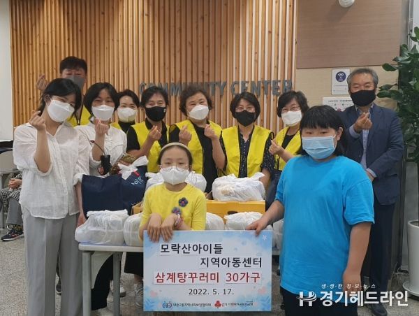 [경기헤드라인=문수철 기자] 의왕시 내손2동 소재 지역아동센터 ‘모락산 아이들’은 5월 가정의 달을 맞이하여 지난 17일 지역 어르신들을 위해 삼계탕꾸러미 30개를 내손2동 지역사회보장협의체에 전달했다.