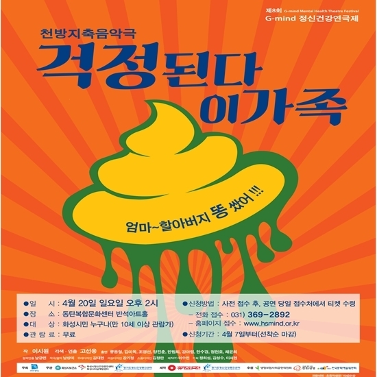 화성시보건소와 화성시정신건강증진센터는 오는 20일 오후 2시부터 동탄복합문화센터 반석아트홀에서 제8회 정신건강연극제 ‘걱정된다, 이 가족’을 공연한다.