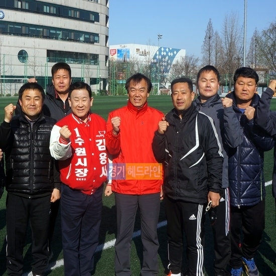 김용서 새누리당 수원시장 예비후보는 지난 6일 오전 수원종합운동장 보조구장, 만석공원 운동장 등을 찾아 수원시축구연합회 주관 축구대회에 참석한 선수들을 만나 격려했다.