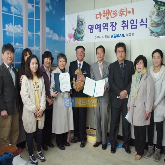 이에 고양이 명예역장이 임명된 역곡역 김행균 역장은 11년전, 선로에 떨어진 아이를 구하다 두 발목을 잃은 ‘아름다운 철도인’으로 보육시설 아동을 대상으로 희망열차를 운행하고, 나눔 쌀독으로 어려운 이웃을 도와주는 등 나눔활동을 지속적으로 실천하고 있어 그 의미를 더하였다.