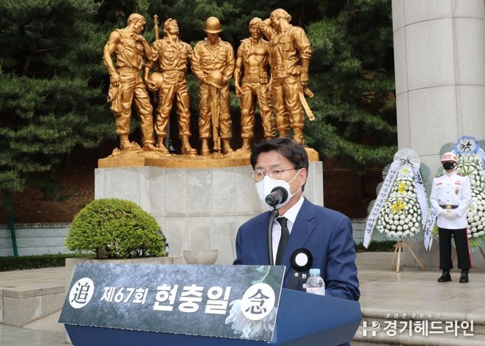 한대희 시장은 추념사를 통해 “해마다 순국선열과 호국영령들의 고귀한 희생을 기억하는 것은 우리가 누리는 자유, 평화, 행복이 그 속에 있기 때문”이라며, “순국선열들의 희생과 헌신을 기리고 그 소중한 뜻을 받드는 일이 오늘을 살아가는 우리들의 책무임을 기억하면서 앞으로도 더욱 지속적인 관심과 함께 적극적인 보훈정책을 펼쳐가기 위해 최선을 다하겠다”고 말했다.