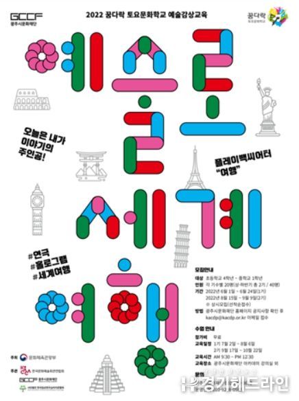 [경기헤드라인=김성구 기자] (재)광주시문화재단은 2022년 꿈다락 토요문화학교 예술감상교육 프로그램의 일환으로 '예술로 세계여행-feat. 홀로그램'을 오는 7월 2일부터 6주간 진행한다고 밝혔다.