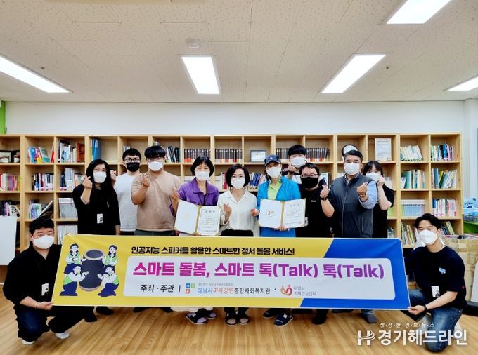 [경기헤드라인=김성구 기자] 지난 16일 하남시미사강변종합사회복지관은 하남시치매안심센터과 함께 인공지능돌봄서비스 ‘스마트 돌봄, 스마트 톡(talk) 톡(talk)’ 사업 진행을 위한 스마트돌봄매니저 임명식을 진행하고 인공지능스피커 사용 교육을 진행하였다.