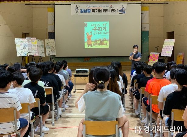 [경기헤드라인=문수철 기자] 광주하남교육지원청 매곡초등학교는 6월 22일 ‘맞바꾼 회중시계’, ‘멋져 부러, 세발자전거!’, ‘불량한 자전거 여행’의 저자인 김남중 동화작가를 초청하여 ‘모두가 일등이 되는 세상’이라는 주제로 작가와의 만남 행사를 진행했다.