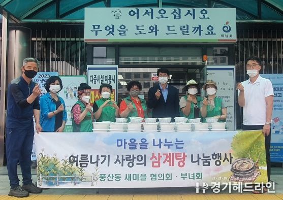 [경기헤드라인=김성구 기자] 하남시 풍산동 새마을협의회·부녀회는 22일 무더운 여름을 맞아 삼계탕과 겉절이를 만들어 취약계층에 전달하는 사랑의 삼계탕 나눔 행사를 실시했다.