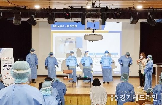 경기도의료원 수원병원 감염내과·외과 전문의 등의 의료진으로 구성된 강사진이 ▲감염관리 기본원칙 ▲개인 보호구의 올바른 착의법 및 탈의법 실습 ▲요양원 입소자 관리 시 상처 및 욕창 관리 등 교육을 실시해 참석자들의 만족도를 높였다.