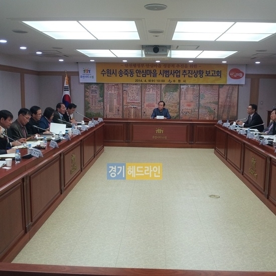 수원시는 지난 9일 시청 상황실에서 안전행정부 안심마을 시범사업의 성공적 추진을 위한“송죽동 안심마을 추진상황 보고회”를 개최했다.