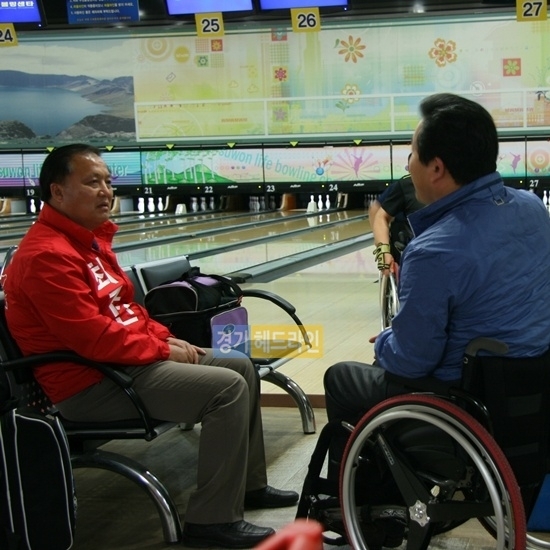 수원볼링센터에서 훈련 중인 경기도 장애인 볼링선수단을 찾아 격려하고 장애인국가대표 훈련용 체육관 유치를 적극 추진 하겠다고 밝혔다.