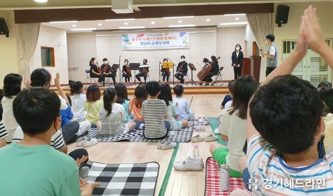 [경기헤드라인=문수철 기자] 광주하남교육지원청 광지원초등학교는 6월 28일, 전교생 대상 2022년도 찾아가는 문화활동의 일환으로 ‘광주시 오케스트라와 함께하는 힐링클래식 여행’공연을 실시했다.