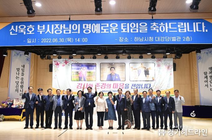 [경기헤드라인=김성구 기자] 하남시는 30일 오후 시청 별관 대강당에서 직원 등이 참석한 가운데 신욱호 부시장에 대한 퇴임식을 가졌다고 밝혔다.