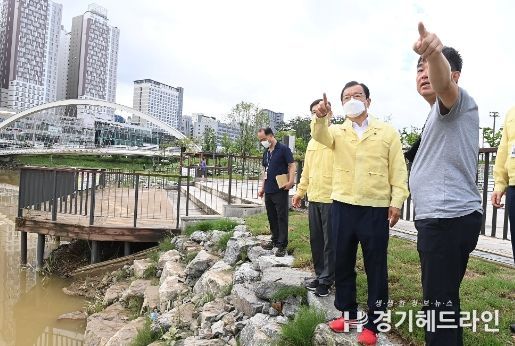 [경기헤드라인=김성구 기자] 이현재 하남시장은 1일 예정된 야외 취임식을 간소화하고 집중호우로 인한 재난 피해 현장을 방문해 점검을 실시했다.