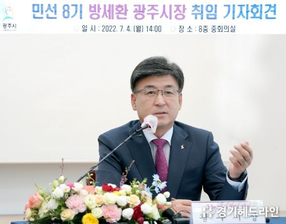 [경기헤드라인=김성구 기자] 방세환 광주시장은 4일 시청 중회의실에서 민선 8기 취임 기자간담회를 열고 시정 주요 과제와 추진방침을 밝혔다.
