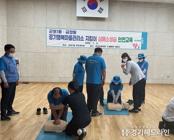 [경기헤드라인=문수철 기자] 군포시는 지난 5일 군포1동 행정복지센터 대회의실에서 군포1동 및 금정동 경기행복마을관리소 지킴이 20명을 대상으로 심폐소생술 등 안전교육을 실시했다.