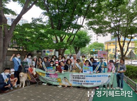 [경기헤드라인=문수철 기자] 군포시 수리동 주민자치회는 지난 7월 6일 수릿길에 반려동물 배변봉투함을 설치하고 올바른 반려동물 문화 만들기 캠페인을 벌였다.