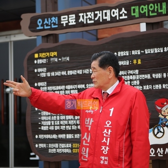 박신원 새누리당 오산시장예비후보가 지난12일 오산 전 지역 공공WiFi설치, 주정차 위반 사전예고제에 이어 세 번째 공공서비스 공약으로 공공임대자전거운영 및 자전거도로의 확충공약을 발표했다.