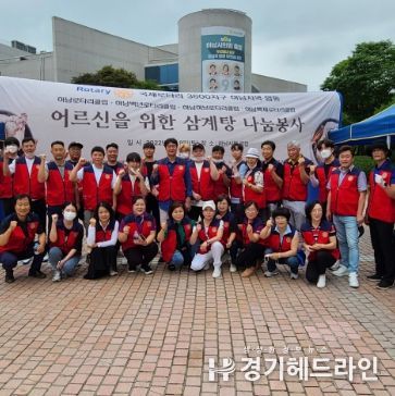 [경기헤드라인=김성구 기자] 국제로타리3600지구 하남지역로타리클럽은 7월9일 하남시청광장에서 하남지역 합동으로 취약계층 어르신을 위한 삼계탕 1000인분 나눔을 실시했다.