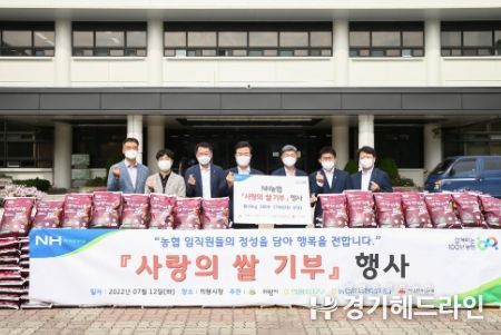 [경기헤드라인=문수철 기자] 의왕시는 NH농협 IT사랑봉사단과 NH농협은행 의왕시지부에서 임직원들의 자율적인 성금으로 마련한 쌀 2,000kg(200포/10kg)를 기부했다고 12일 밝혔다.