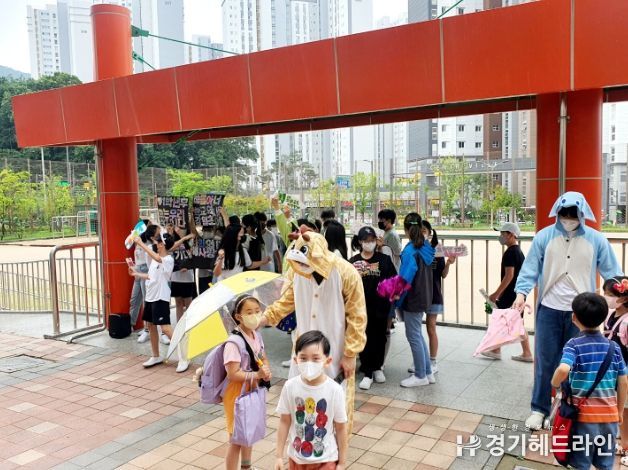 [경기헤드라인=문수철 기자] 감일초(교장 송경자)는 2022년 07월 13일 아침 등교시간(08:30~09:10)에 여름방학을 앞두고 첫 학교에서 첫 학기를 무사히 마무리한 1학년을 위한 축하 맞이 행사를 진행했다.