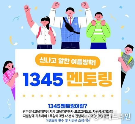 [경기헤드라인=문수철 기자] 광주하남교육지원청 학교행정지원과는 여름방학(7~8월)동안 학습격차 해소 및 코로나 우울을 해소하기 위해 마을인적자원을 활용한 ‘2022학년도 여름방학 1345 멘토링 교육자원봉사 프로그램’을 운영한다고 밝혔다.