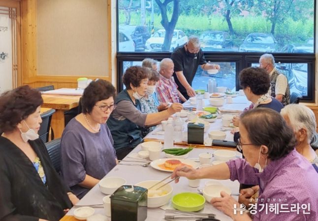 [경기헤드라인=문수철 기자] 의왕시 청계동 '청계맑은숲 먹거리마을 상인회'는 다가오는 초복을 맞아 지난 14일 관내 어르신들께 보양식을 대접했다.
