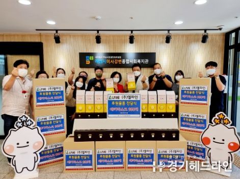 [경기헤드라인=김성구 기자] ㈜엘파인은 공기청정기와 마스크가 결합된 스마트한 애키마스크 950개(약 5,600만원 상당)를 하남시미사강변종합사회복지관에 전달하였다.