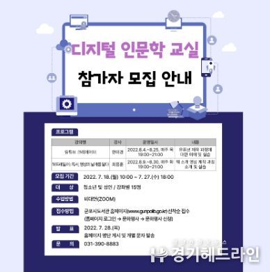 [경기헤드라인=문수철 기자] 군포시 중앙도서관이 ‘디지털 인문학 교실’을 연다.