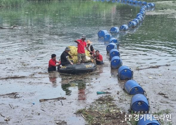 이는 최근 장마기간 집중호우로 상류 등에서 폐기물 등이 저수지로 유입되어 중대물빛공원의 수질 오염 방지와 공원 경관개선을 위한 것이다.