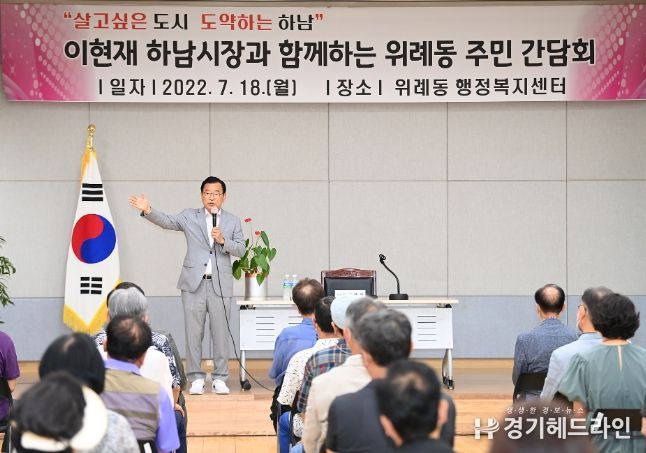 [경기헤드라인=김성구 기자] 이현재 하남시장이 18일 하남 위례·감일 신도시 주민들을 만나 “신도시의 교통문제와 교육인프라를 개선할 수 있도록 생활SOC 확충에 힘쓰겠다”고 밝혔다.