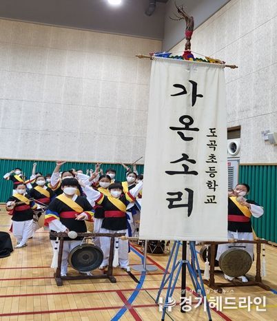 [경기헤드라인=문수철 기자] 도곡초등학교(교장 황영극)의 사물놀이반 ‘가온소리’가 2022년 7월 14일에 개최된 2022 제30회 광주시 청소년종합예술제 사물놀이 앉은 반 부문에서‘웃다리 사물놀이’로 초등부 최우수상을 수상했다. 코로나19 이후 2년 만에 대면 방식으로 열린 이번 대회에서 도곡초의 가온소리는 멋지고 흥겨운 무대를 보여주었다.