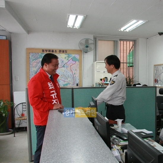 최규진 새누리당 수원시장 예비후보는 “15일 수원시 팔달구 지동에 위치한 동부파출소를 방문해 관계자 격려와 촘촘한 사회안전망 구축을 통한 시민안전을 확보하겠다”고 밝혔다.