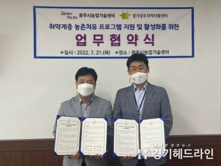[경기헤드라인=김성구 기자] 광주시농업기술센터는 경기광주지역자활센터와 최근 ‘취약계층 농촌 치유프로그램 지원 및 활성화’를 위한 업무협약을 체결했다고 22일 밝혔다.