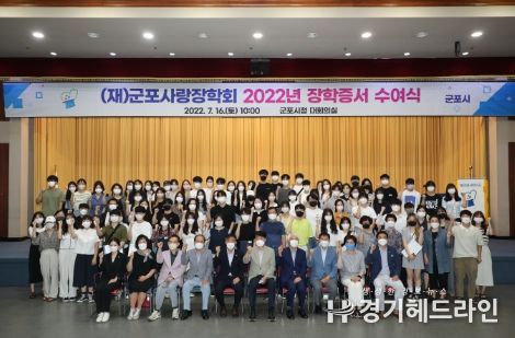 [경기헤드라인=문수철 기자] 군포시와 군포사랑장학회가 7월 16일(토) 군포시청 대회의실에서 지역 인재로 선정된 청소년 180명에게 장학증서를 수여했다.